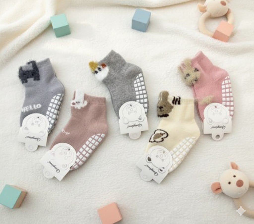 خلي خطوات طفلك دايمًا آمنة ومريحة! الشراب مصنوع من خامة قطنية ناعمة بتخلي رجله تتنفس، ونعل رابر مانع للانزلاق يحميه من الزحلق سواء في البيت أو الحضانة.