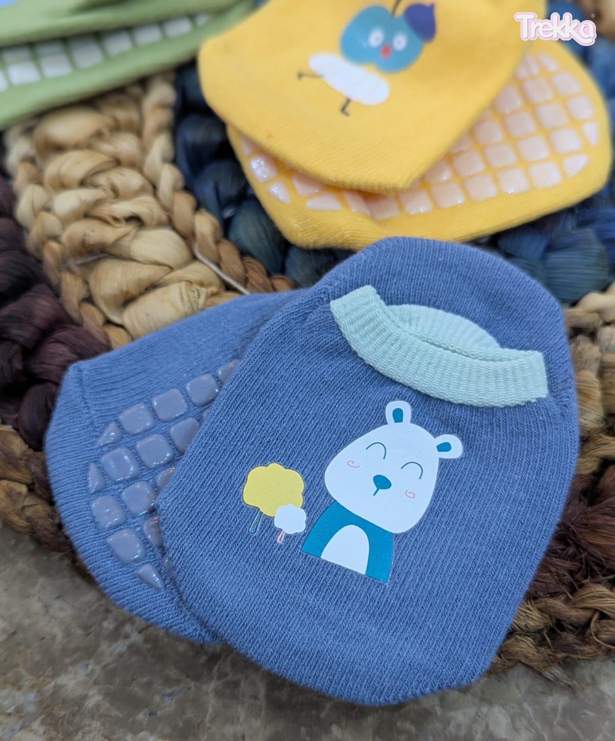خلي خطوات طفلك دايمًا آمنة ومريحة! الشراب مصنوع من خامة قطنية ناعمة بتخلي رجله تتنفس، ونعل رابر مانع للانزلاق يحميه من الزحلق سواء في البيت أو الحضانة.