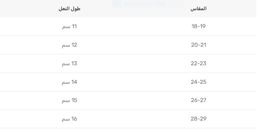 | المقاس | طول النعل |