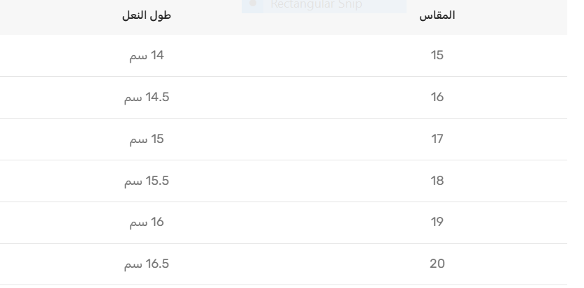 | المقاس | طول النعل |