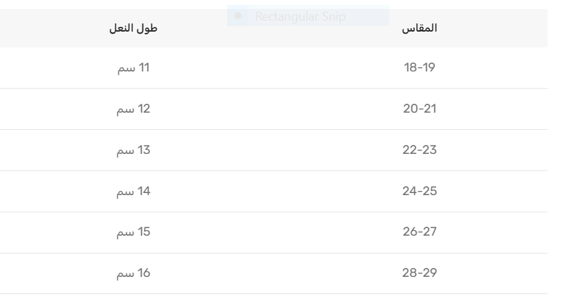 | المقاس | طول النعل |