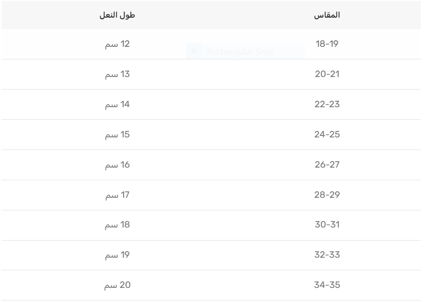 | المقاس | طول النعل |