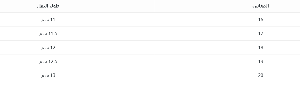 المقاس طول النعل