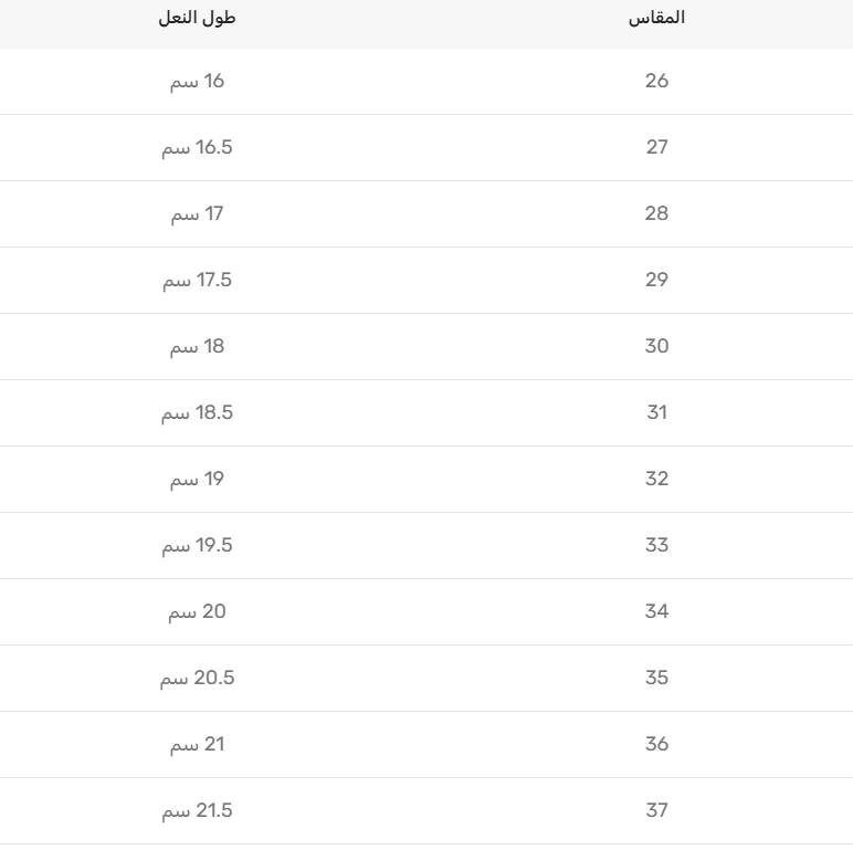 | المقاس | طول النعل |